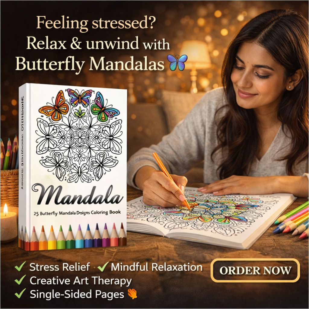 Unwind your mind and spark your creativity with this beautiful coloring book featuring 25 unique Butterfly Mandala designs. Each illustration blends the elegance of butterflies with the calming symmetry of mandalas, specially crafted to help reduce stress, improve focus, and inspire mindfulness. Perfect for adults and teens, this coloring book offers single-sided, high-quality designs ideal for colored pencils, markers, or gel pens. Whether you’re seeking relaxation, creative expression, or a thoughtful gift, this butterfly mandala coloring book is a perfect choice.